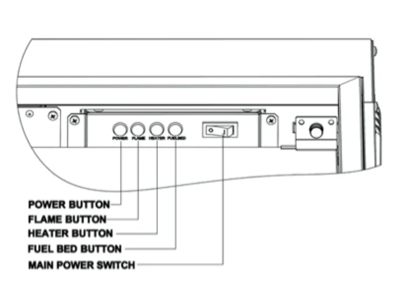 2. Turn off the main power switch located underneath the trim on the top right corner. Wait 5 minutes for heater to cool down, then switch on the fireplace again.